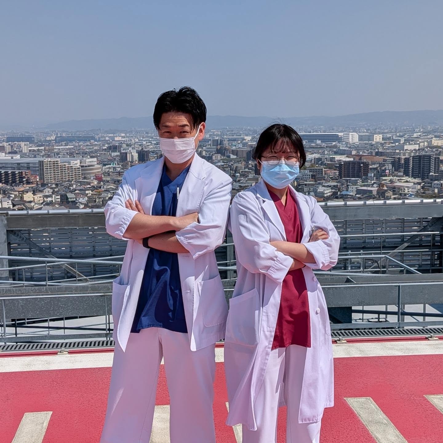 記念すべき最初の1枚は、当院のヘリポートにて。