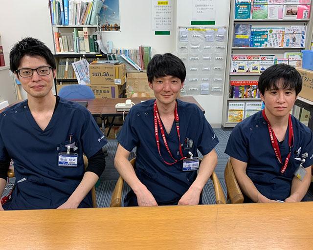 秋山 2人と同じなんですけど、ローテートしている科目じゃなくても、先生から声をかけてもらって時間が合えばオペに立ち会わせてもらうこともできて、フットワークの軽さや臨機応変に色々と体験させてもらえる所が凄くいいなと思います。あとは、研修医全員に救急対応の連絡が回るので、手が空いていれば救急科を回っていなくても救急対応することができて、自分がメインで診ない場合でも、採血などの手伝いをさせてもらえる点も魅力だと感じます。ひとりあたりが診る救急の件数は多いのかなと思います。