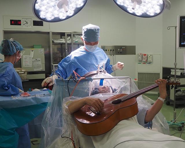 脳の手術を受けている患者さんが起きている状態で、楽器を弾いているんです。楽器を弾きながら手術を受けるということが世の中にあるのかという衝撃を受けました。その患者さんは指がぎゅーっと曲がってしまうようなジストニアの患者さんで、楽器を弾くことができませんでした。でも、そういった症状が手術中に見る見る改善し、さらに手術後のビデオを見ると、また楽器を弾けているわけです。こういった魔法のような手術が存在することに驚き、パーキンソン病の手術を初めて見たときと同じような衝撃が全身に走りました。人生で2回目の衝撃でしたね。そして、この先生のもとで勉強させていただければ嬉しいなと強く思いました。それから上司の許可を取り、1年間、定期的に平先生のところに見学に行き、勉強させていただきました。ただ、やはり週1回ペースで見学に行っても学べる量は限られていますし、集中して勉強させていただける機会があればと思うようになっていきました。その後、私が専門医を取った頃に、平先生が定期的に湘南藤沢徳洲会病院に集束超音波治療のご指導に来てくださるようになりました。平先生のご指導を受けながら集束超音波治療の手術を行う中で、平先生と会話をしているうちに、先生のもとで勉強させていただきたい想いは、一層強くなりました。でも、平先生がいらっしゃる女子医大で学ぶとなると女子医大に入局しないといけなくなるだろうし、やはり女子医大に行くことは不可能なのかなという思いもありました。そんなときに、一緒に仕事をしていた脳神経内科の先生が「山本先生が平先生のもとで勉強できたら最高ですよね」という助け舟を出してくださったんです。そうしたら、平先生が「いつでもウェルカムだよ」とおっしゃってくださり、その場で了解を得ました。