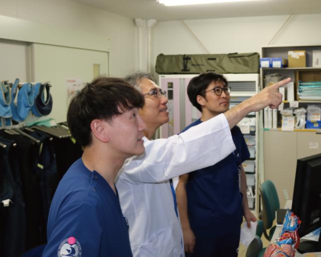 人工心肺を使っているような患者さんを担当したり、初期ではできないような経験や、初期研修が終わって専門医になって診るような患者さんを実際に診せてもらったりしています。一応立場的には研修医になるので、指導医や先輩の先生からいろいろ教えてもらっています。まだ医者になって5年目、後期になって3年目というフレッシュで考え方を構築できていくようなタイミングで、重症な患者さんや貴重な症例を持たせてもらえるので、そういう環境でシビアな患者さんを持つという事が1番勉強になっているなと思います。