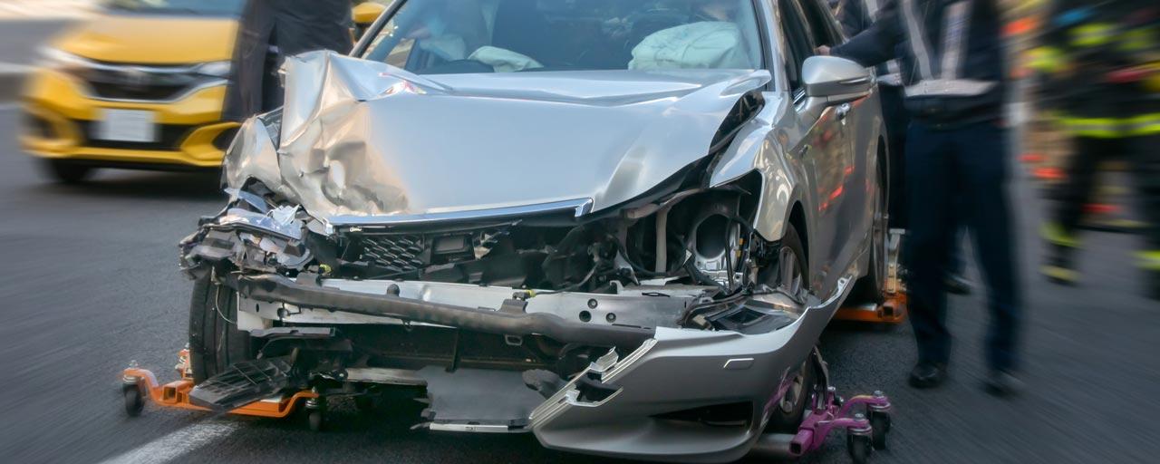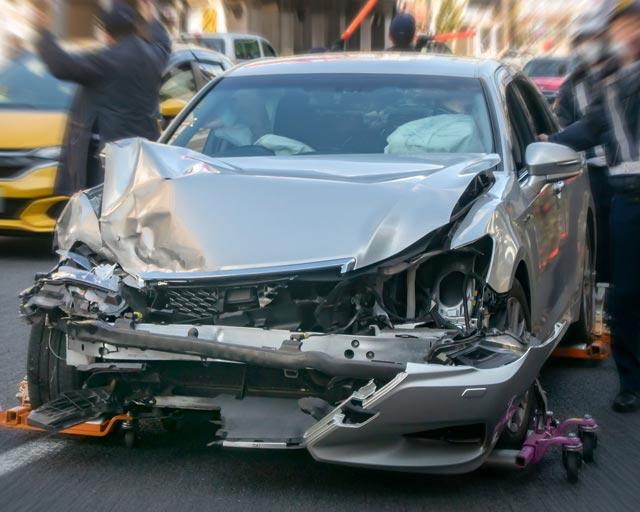 現病歴:高速道路で乗用車運転中にガードレールに衝突した。乗用車は前方部分が大破し、エアバッグが作動していた。救急隊の観察結果から、搬送先の医師により酸素投与、静脈路確保および大量輸液が指示され、病院へ搬送された。
