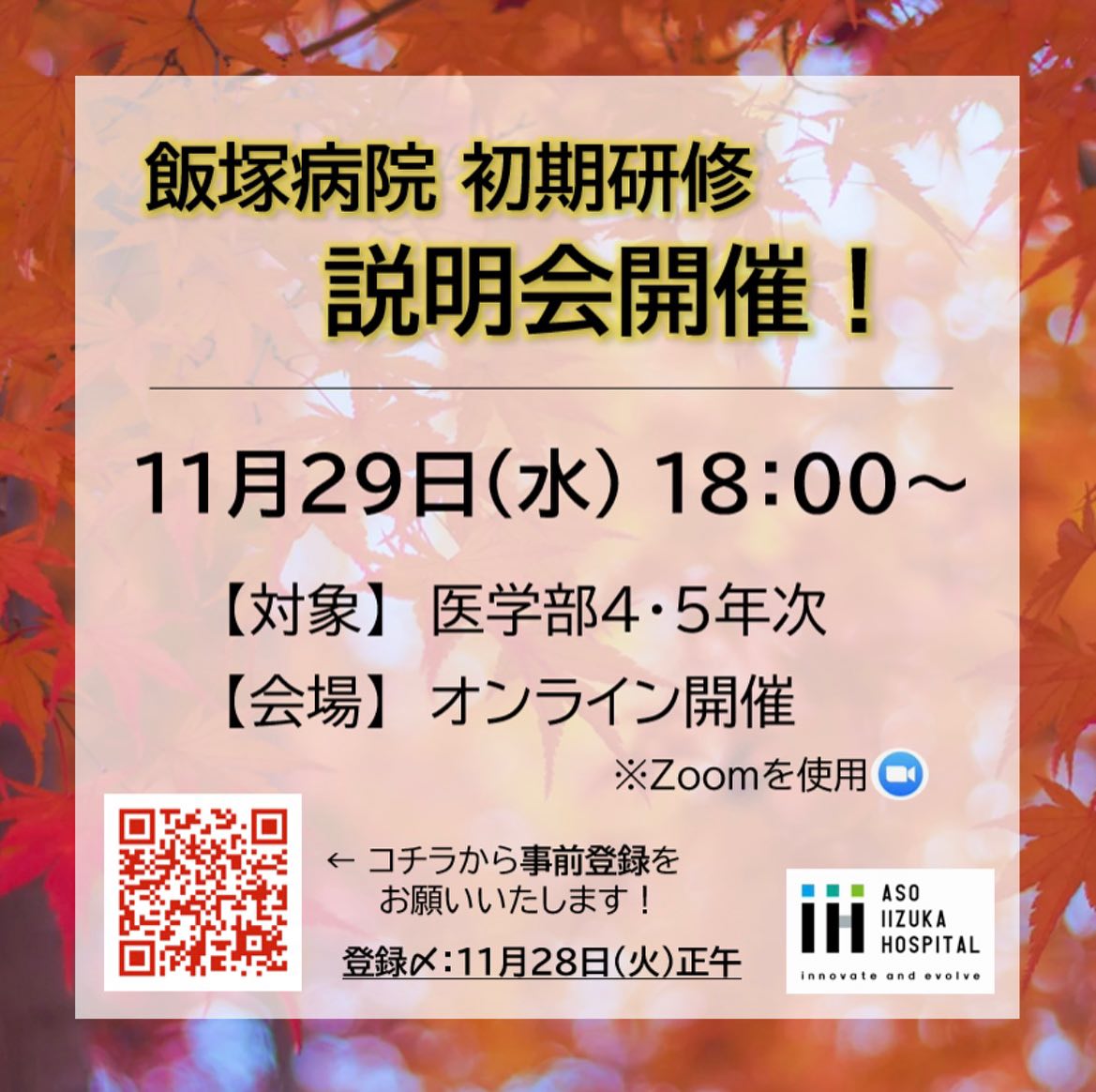 ꉂꉂ📣【11/29(水)飯塚病院 初期研修説明会 開催‼️】