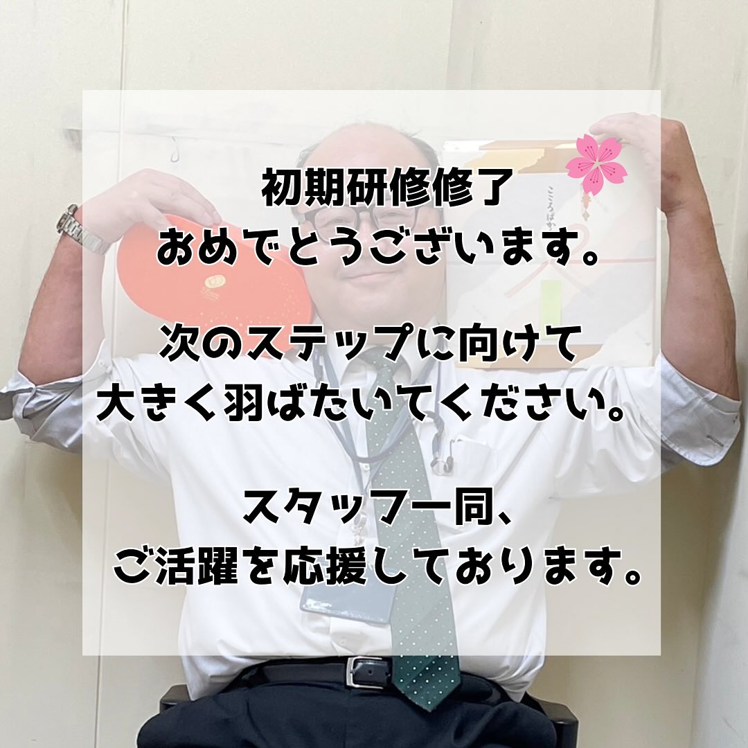 (少し遅くなりましたが)先日、初期研修修了者の方が