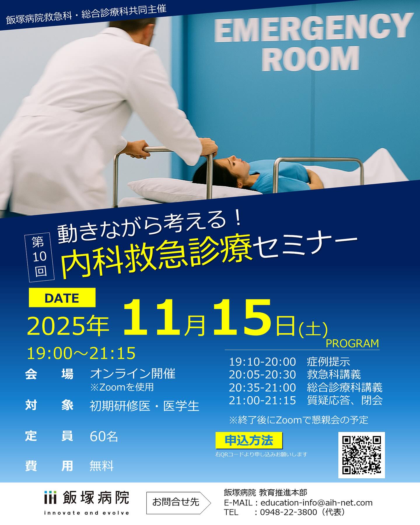 #飯塚病院 #内科 #救急 #総合診療 #オンライン #セミナー #研修医 #医学生 #症例 #講義 #懇親会 #登録 #お待ちしております