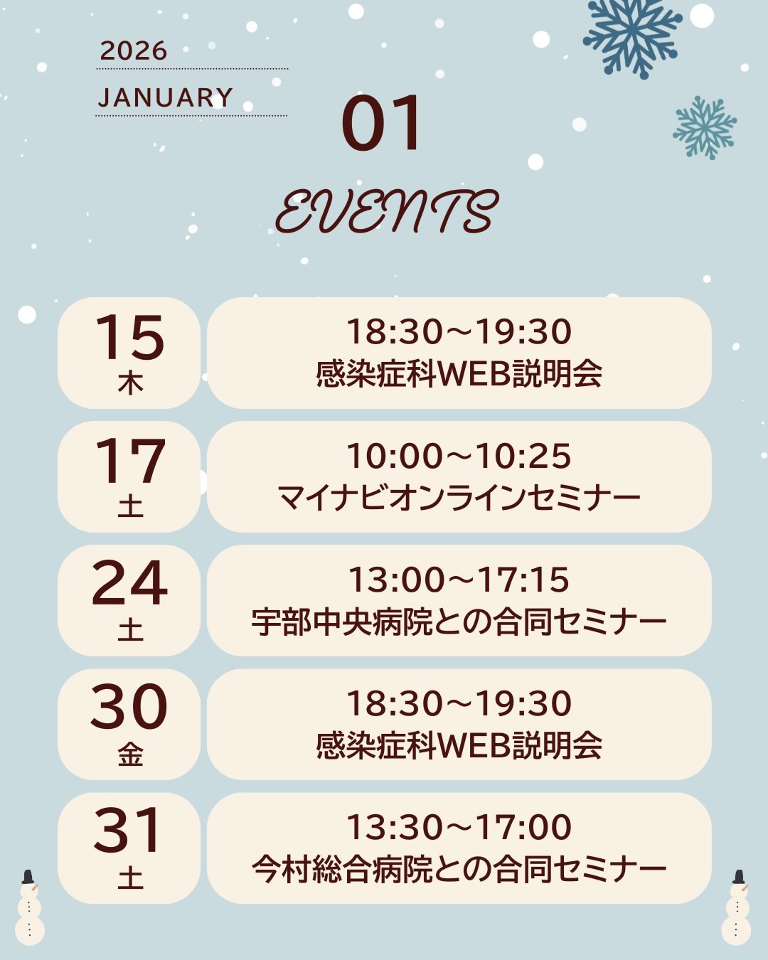 2026年1月は上記イベントを開催します。