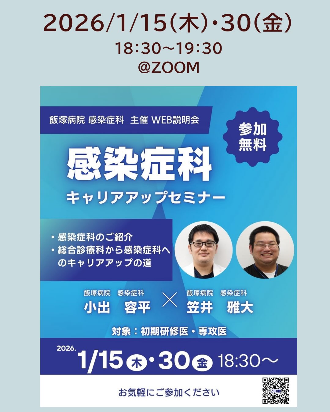 感染症診療やキャリア選択に少しでもご興味のある先生は、ぜひお気軽にご参加ください。