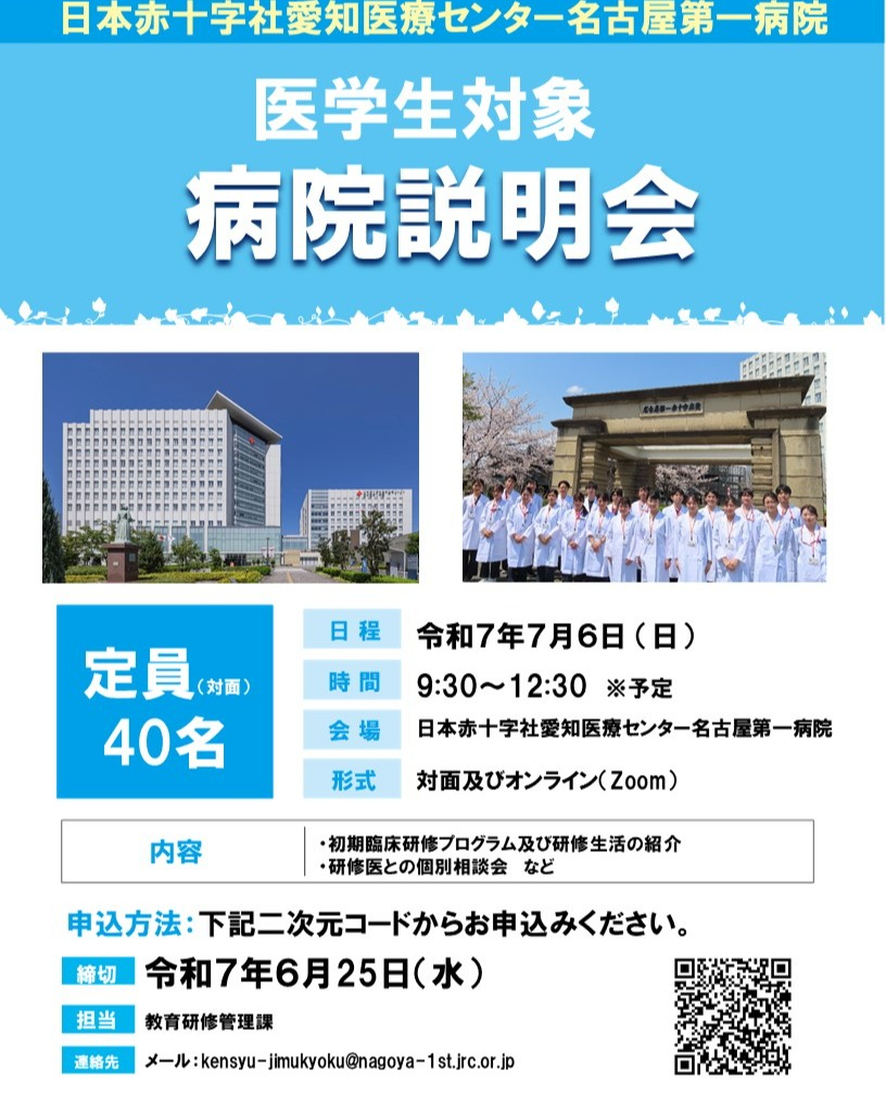 臨床研修について:https://www.nagoya-1st.jrc.or.jp/recruit/residents/