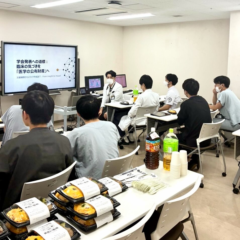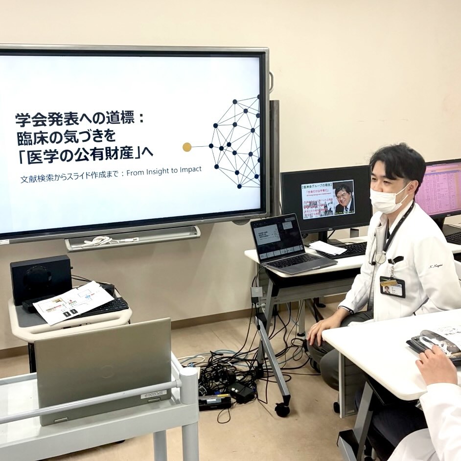 シニアレジデントからは、テーマ設定の考え方や発表準備のポイント、日々の診療を学びにつなげる視点についてお話があり、研修医にとって新たな気づきの多い時間となりました💡