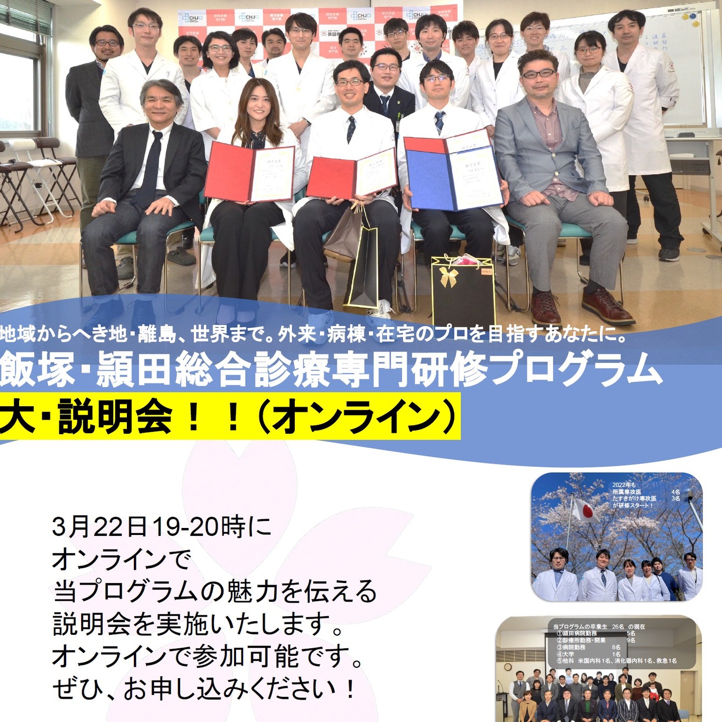 2023年3月22日(水)19時~20時、オンライン(ZOOM)にて、飯塚・頴田総合診療専門研修プログラムの魅力を伝える説明会を実施いたします!