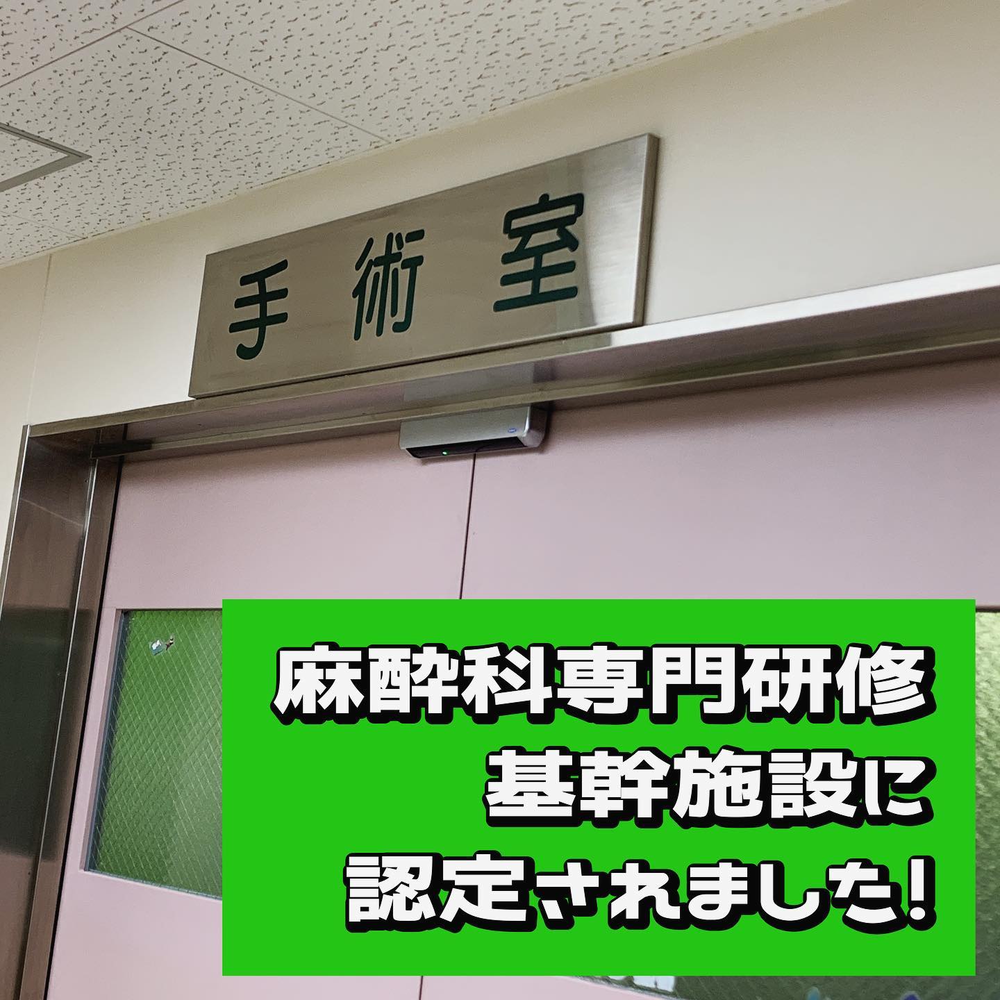 この度"麻酔科専門研修プログラム"が認定され、