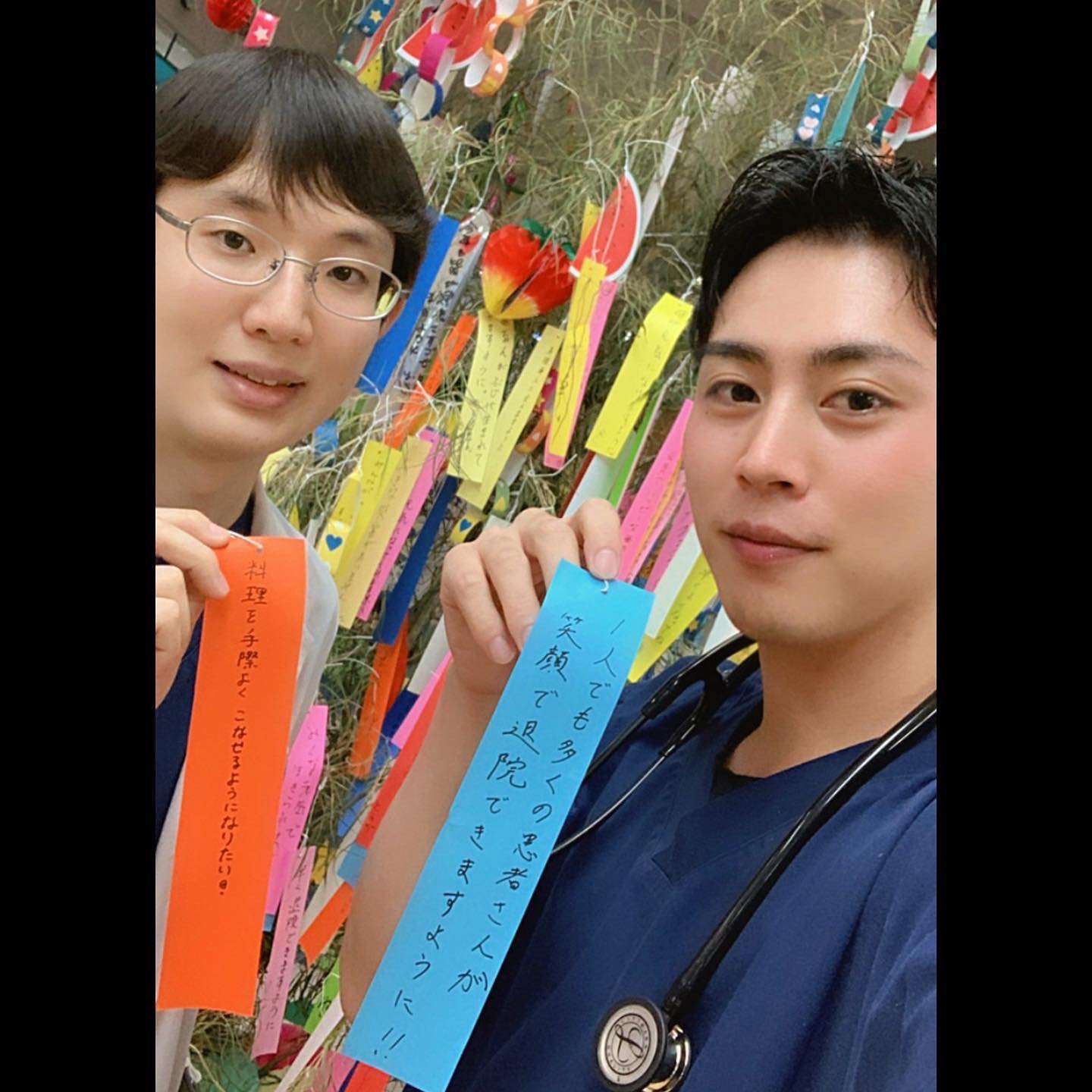 昨日 研修医も短冊を書いて