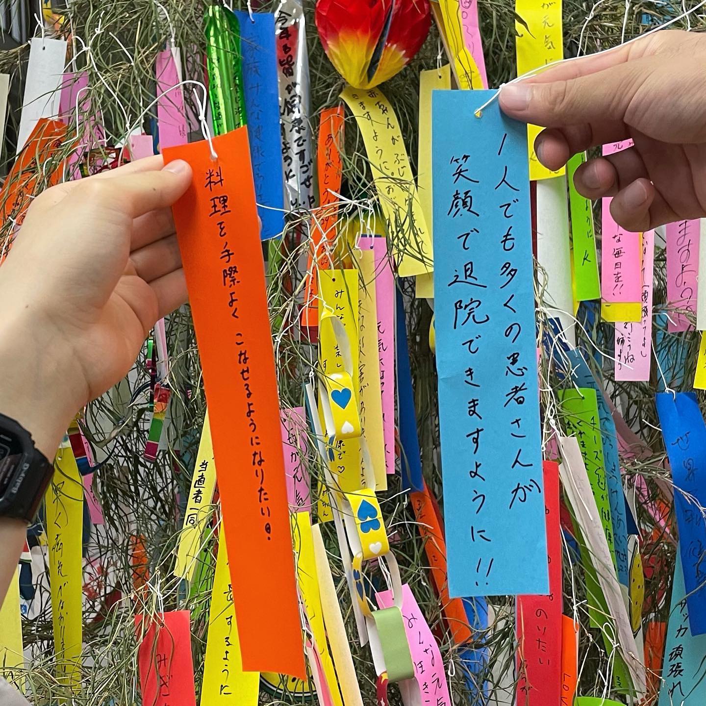 院内の笹飾りにつるしました✍🏻