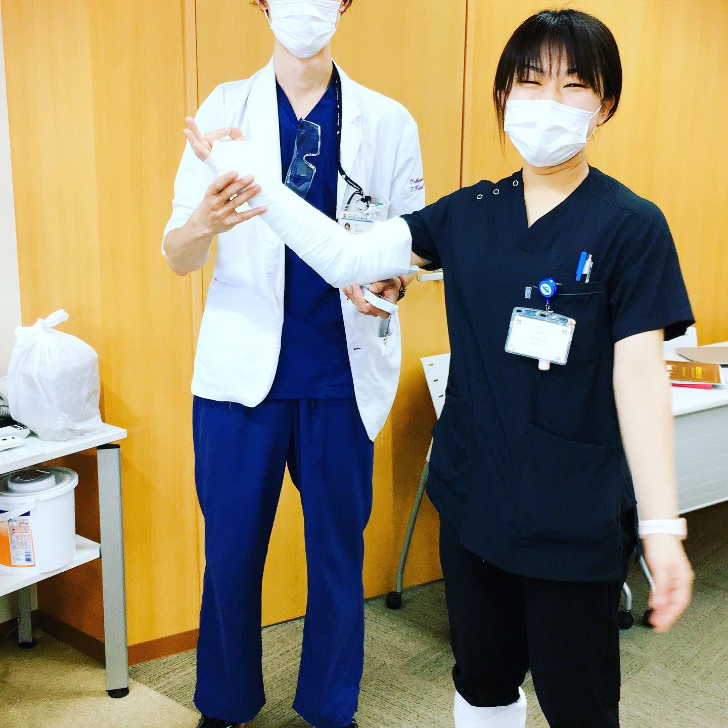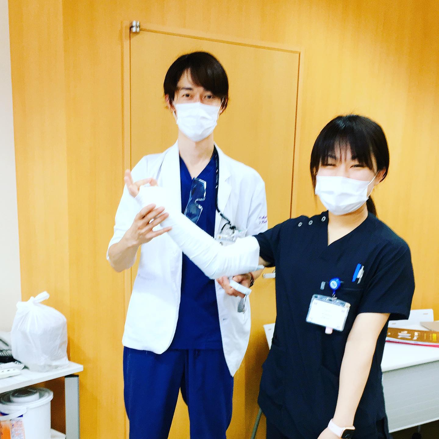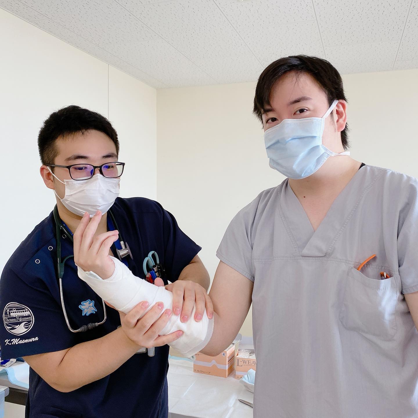 感染対策の一環で少人数での勉強会も増えましたね、贅沢かも 今日は骨折固定、今週末は胸腔穿刺 何回も教えてくれる指導医に感謝 #フジトク #初期研修医 #研修医