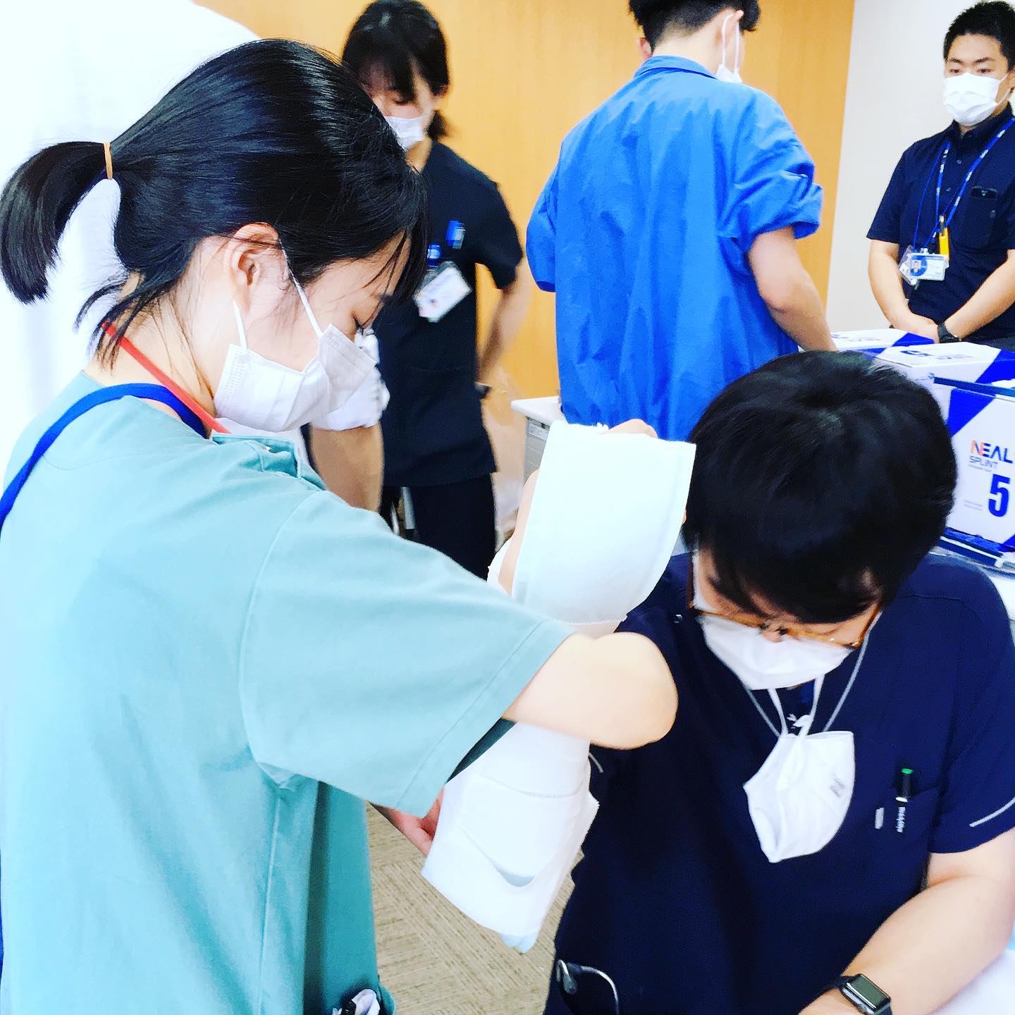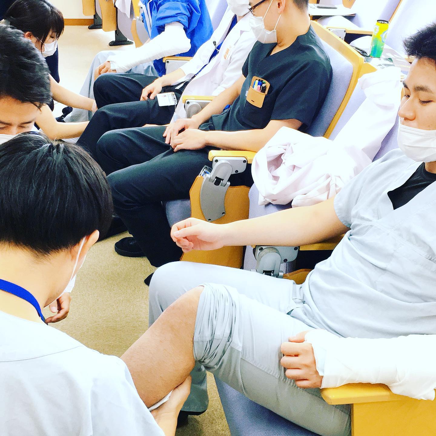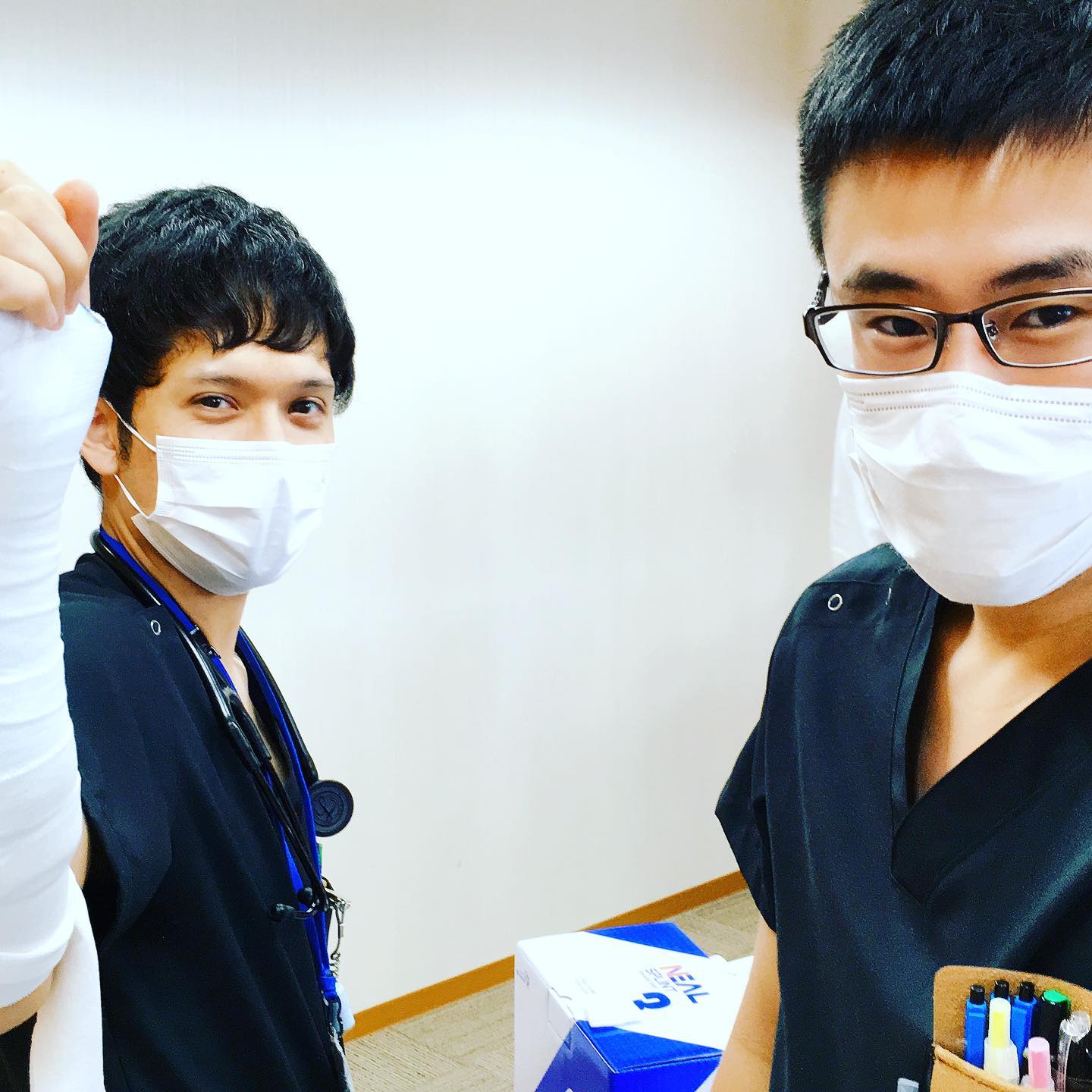 感染対策の一環で少人数での勉強会も増えましたね、贅沢かも 今日は骨折固定、今週末は胸腔穿刺 何回も教えてくれる指導医に感謝 #フジトク #初期研修医 #研修医