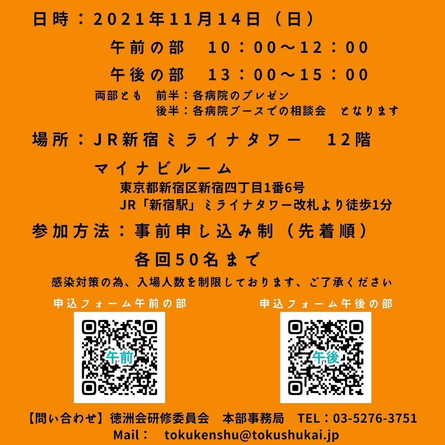 全国徳洲会グループ説明会を11/14(日)行いますので是非ご参加ください(^^) 参加者へのプレゼント企画も進行中です🎁 当院研修センターのFacebookページからもお申込いただけます✨ #フジトク #初期研修医 #研修医 #感染予防対策しています