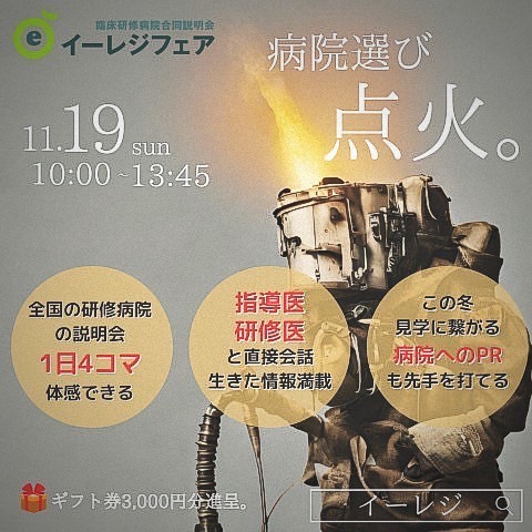 【予約受付中!】11/19(日)病院合同説明会イーレジフェアオンライン開催!