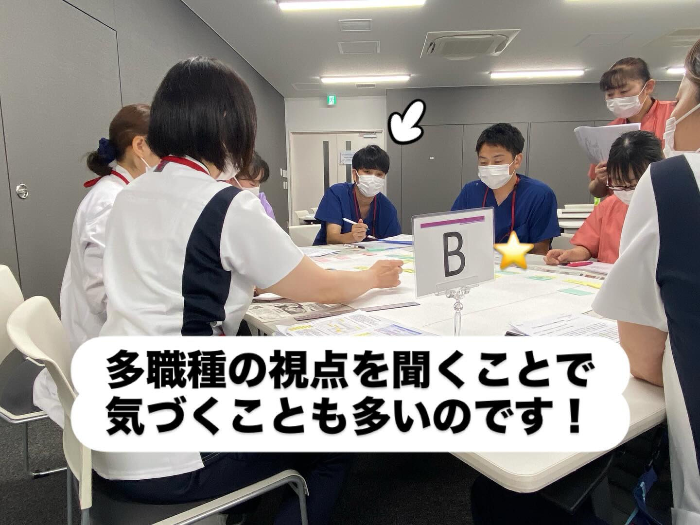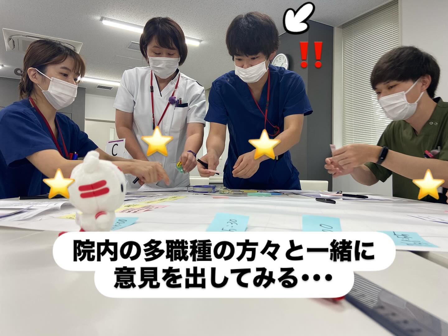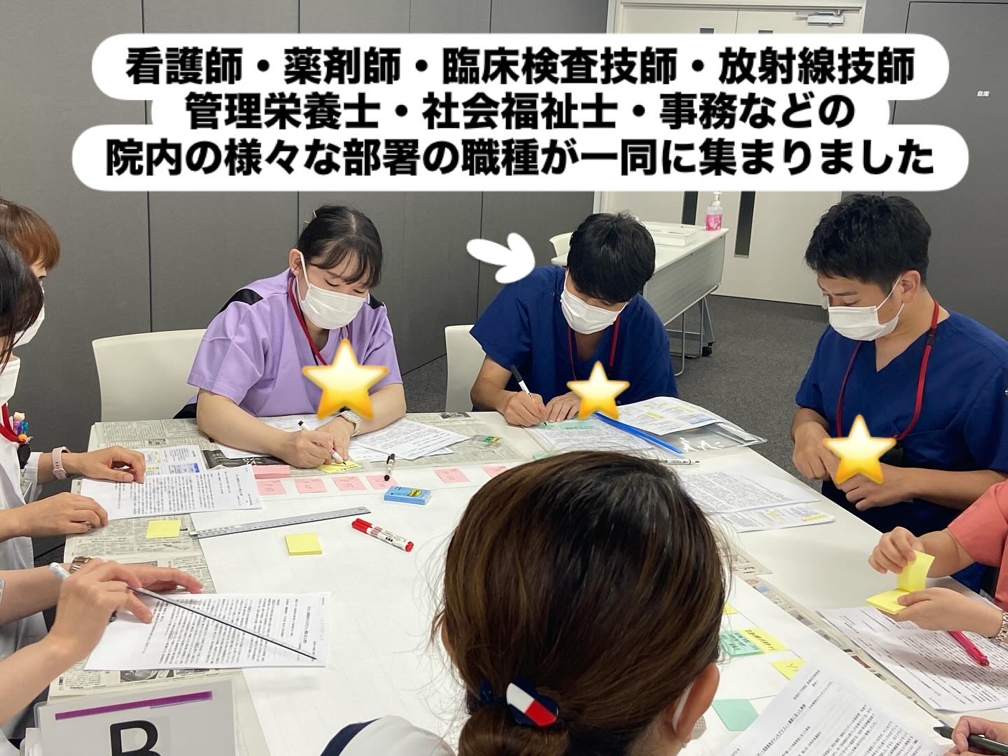 院内の様々な職種の方々と一緒に、「これだよね」「ここじゃない?」など職種を問わずに1人1人意見を出し合いました。