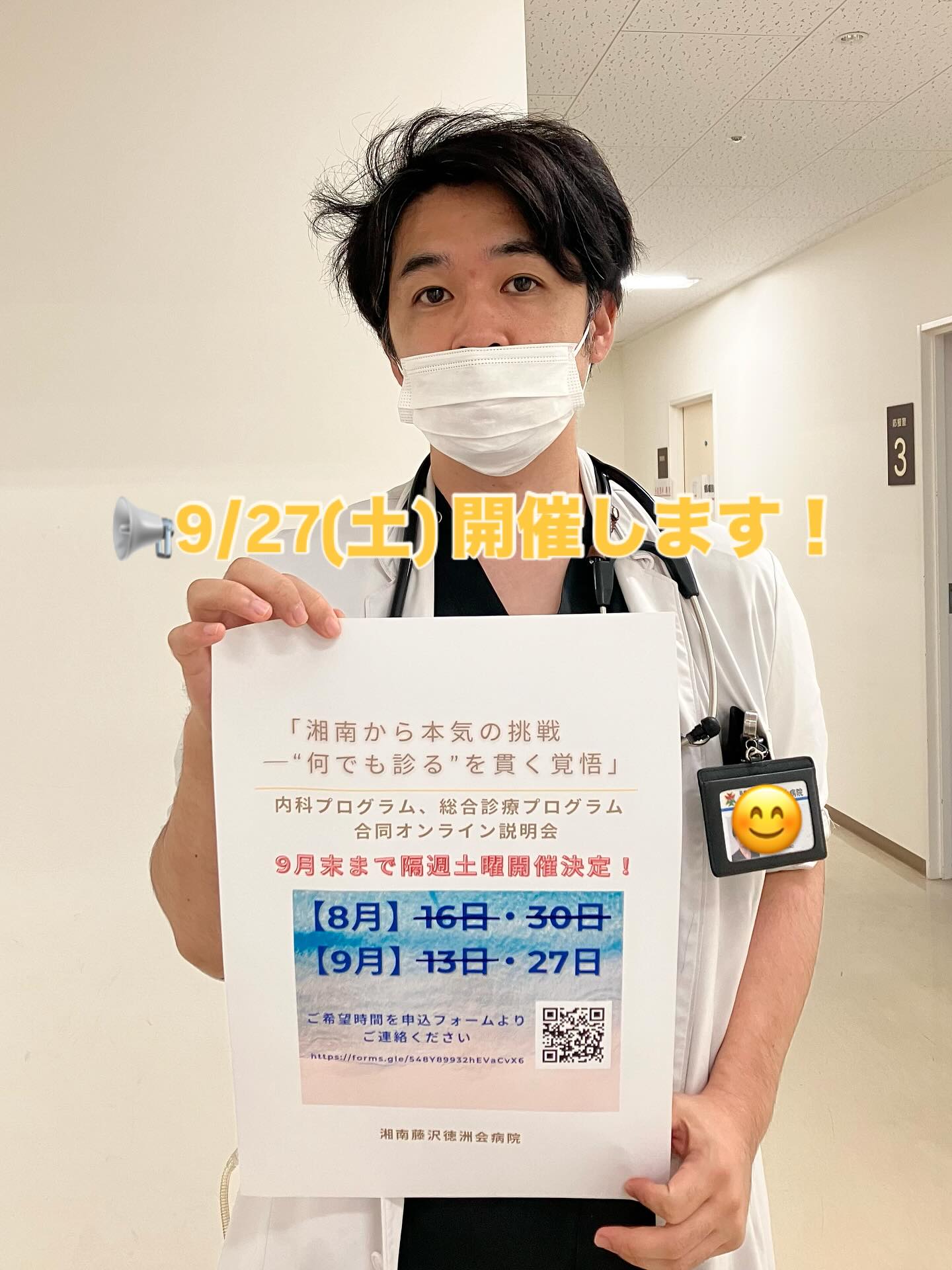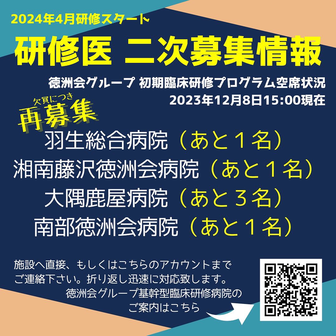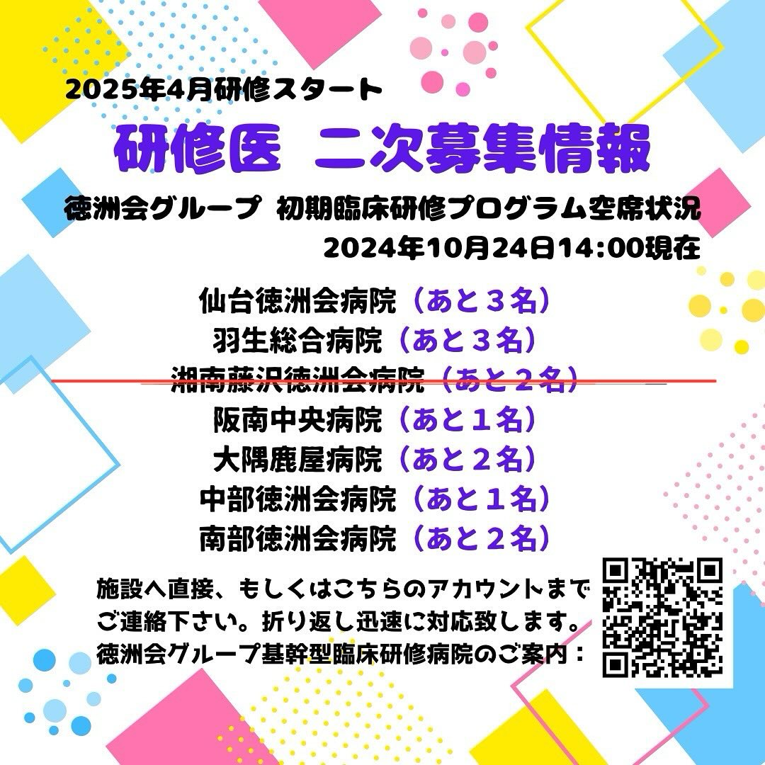 欠員が出ましたので2024年度研修医再募集します!