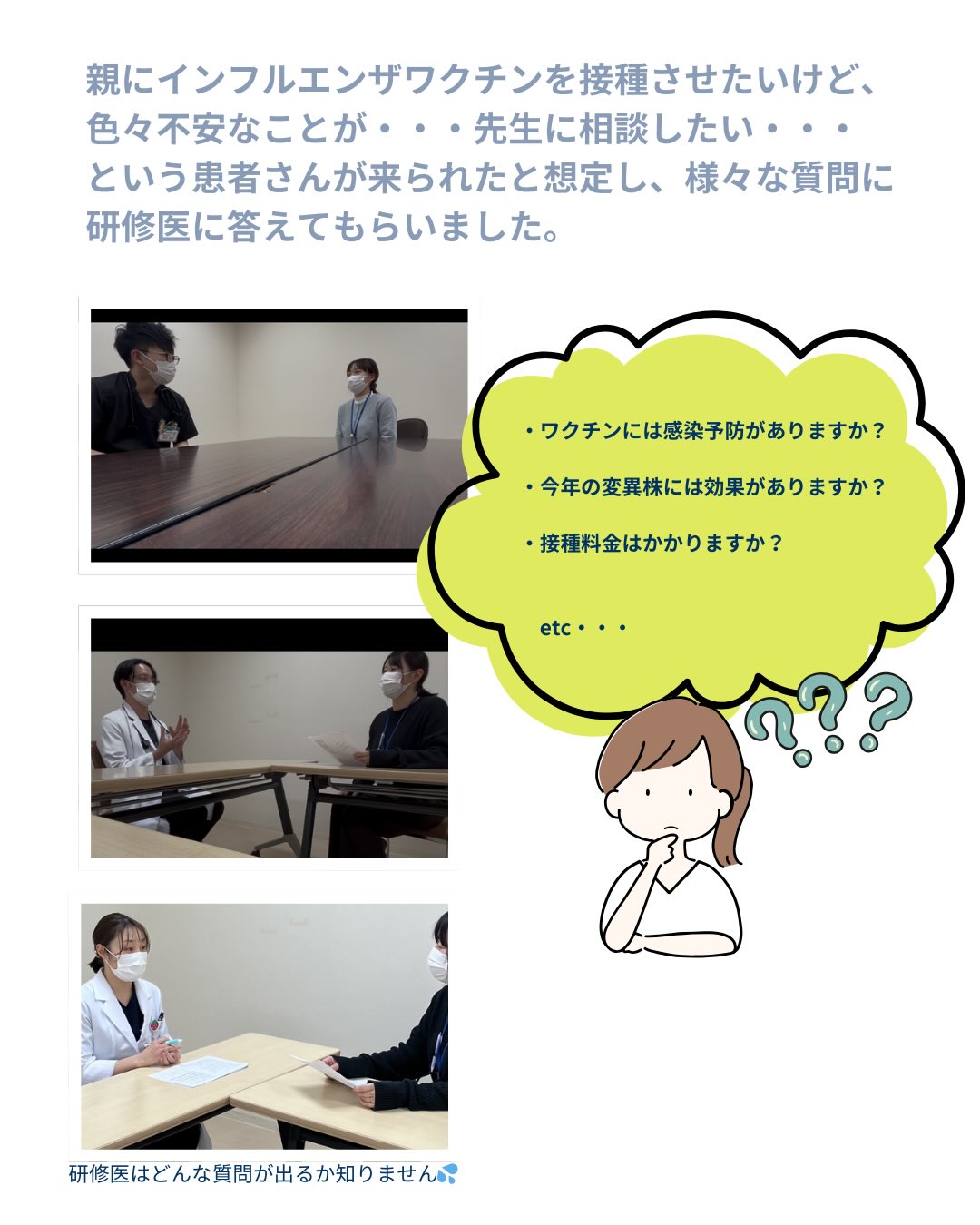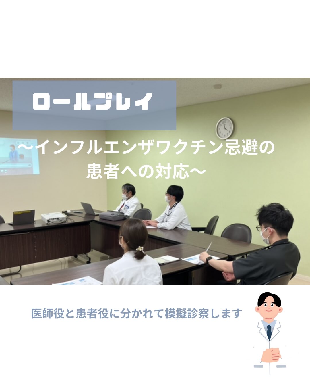 ワクチンに対する様々な質問を医師役の研修医へ