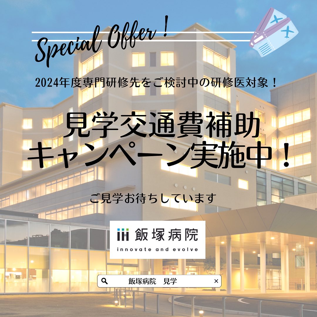 見学🗣 2024年から専門研修を開始する方対象に交通費の補助キャンペーンを実施中です!これから病院見学を検討中の方は是非この機会に足をお運びください。 百聞は一見にしかず、です! 実際の現場の様子や雰囲気を感じてベストな研修先選びを行なってください😃 見学申込みURL↓ https://aih-net.com/resident/contact/senior_visit_entry/index.php 採用面接も随時受け付けています! ご応募お待ちしております💁‍♂️