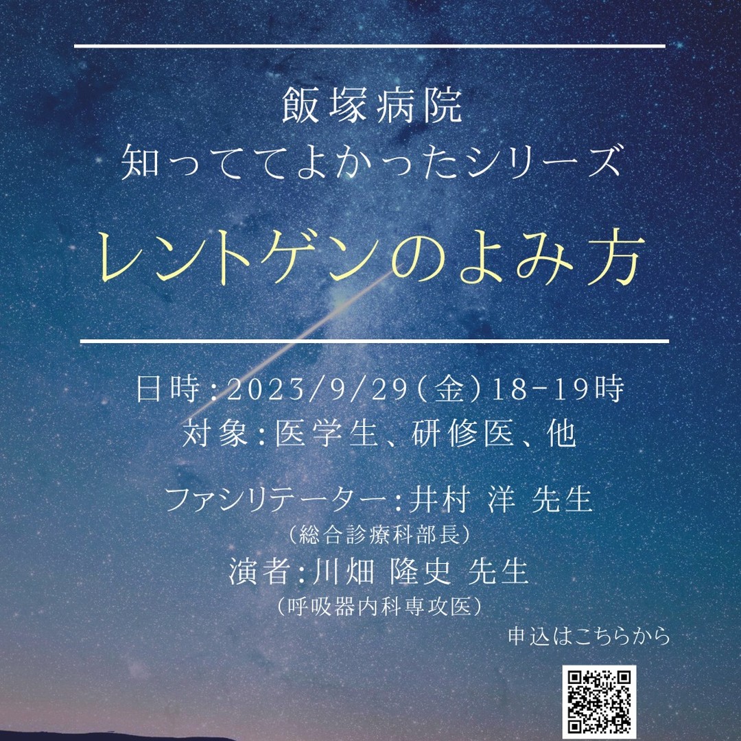 飯塚病院 知ってて良かったシリーズ 9月29日(金)18〜19時開催 今回は〜レントゲンのよみ方〜をテーマとして開催予定です! 皆様のお申込みお待ちしています。  ▼▼企画中のイベント、当院のSNSはこちらから▼▼ https://linktr.ee/AIHEPO @education_promotion_office #飯塚病院 #初期研修 #専攻医 #医学セミナー