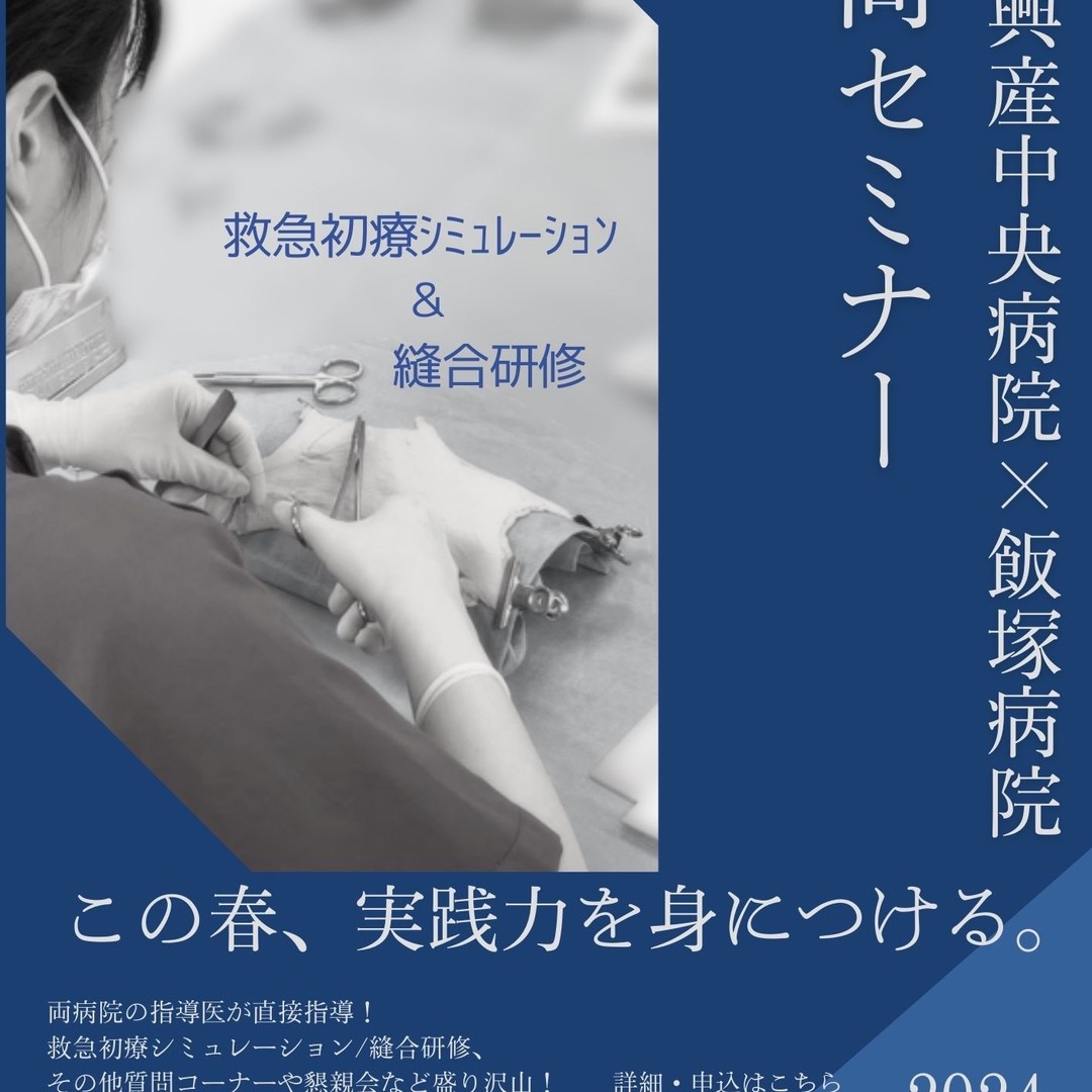宇部興産中央病院・飯塚病院 合同セミナー 当院でのレクチャーを体験いただける企画となっています。ご参加をお待ちしています! ■ 救急初療トレーニング T&A 「ショック」「胸痛」〜動きながら考える・考えながら動く〜 講師:飯塚病院 総合診療科 小田 浩之 先生 宇部興産中央病院 総合診療科 齊藤 裕之 先生 ■ 縫合研修 講師:宇部興産中央病院 外科 近藤 潤也 先生 ■ 懇親会 (17時30分頃より~) 開催日:2024年3月2日(土) 受け付け開始:12時30分 セミナー開催時間:13時〜17時頃迄 参加費:無料 対象:医学生、初期研修医、希望者 会場:ANAクラウンプラザホテル宇部 ▼▼企画中のイベント、当院のSNSはこちらから▼▼ https://linktr.ee/AIHEPO @education_promotion_office #飯塚病院 #飯塚病院 教育推進本部 #医学生セミナー #研修医セミナー #救急初療 #縫合研修 #初期臨床研修